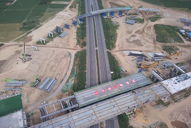 蘭考至沈丘高速公路蘭考至太康段三標傅集樞紐互通鋼箱梁工程頂推、吊裝