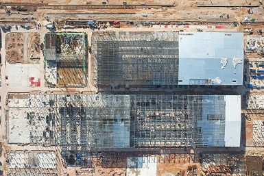 億緯馬來西亞一期項目施工總承包工程化成車間二標段主體鋼結(jié)構(gòu)封頂
